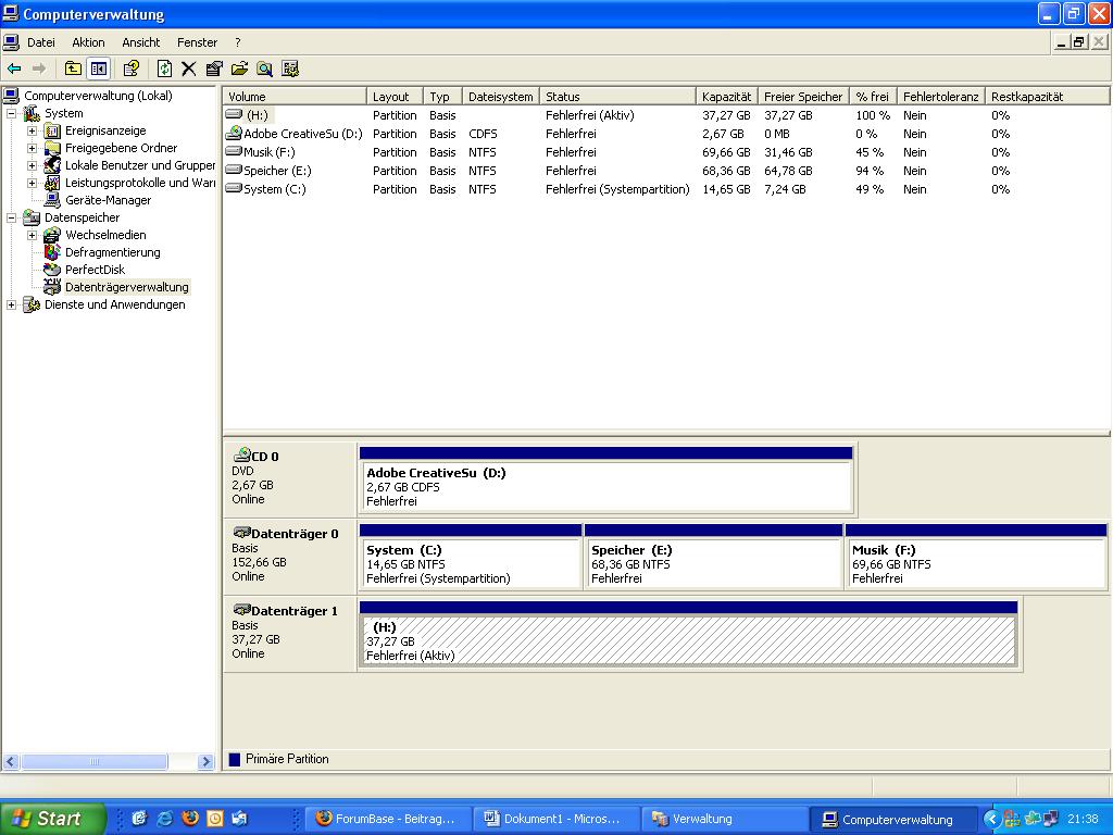 ich wollte eine Platte, die vorher in 2 Partitionen (5 GB System + 35 GB Daten) unterteilt war, in meinen neuen Rechner mit XP Pro SP2 einbauen, um die alten Sachen rüberzukopieren.