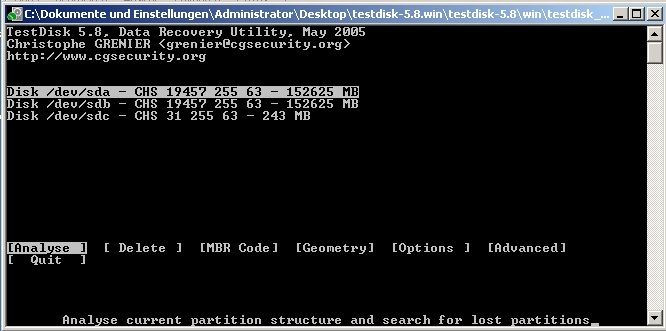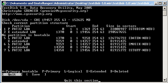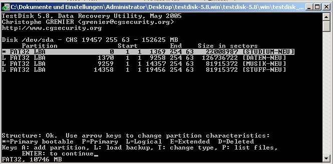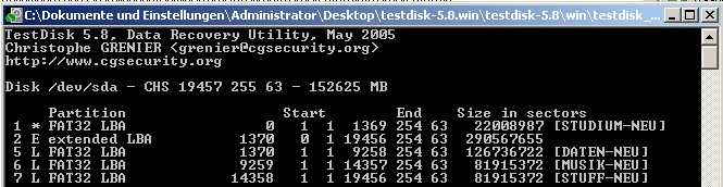 Nun habe ich mit Testdisk die Platte überprüft, es wird die richtige Größe angezeigt
