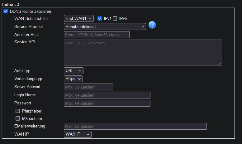 kann mir jemand sagen, wie ich auf dem Draytek ein DynDNS von hosting.de einrichten muss? Ich bekomme es nach zig Versuchen einfach nicht hin...