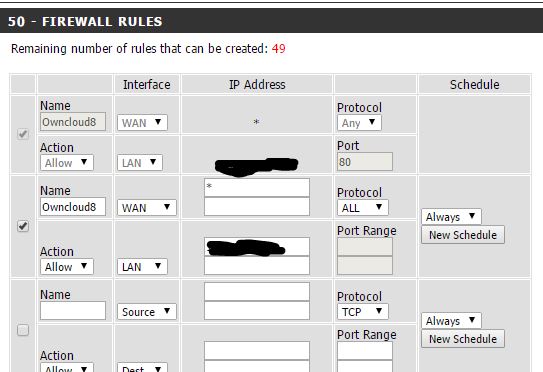 Ich habe hierfür in meinem Router D-LINK DIR-615 den DDNS Dienst dlinkddns.com eingerichtet. Pingt man diesen an wird auch meine korrekte Internet-IP angezeigt. Allerdings sollte dann über dien Browser username.dlinkddns.com/owncloud der Webserver erreichbar sein. Leider funktioniert dies nicht.