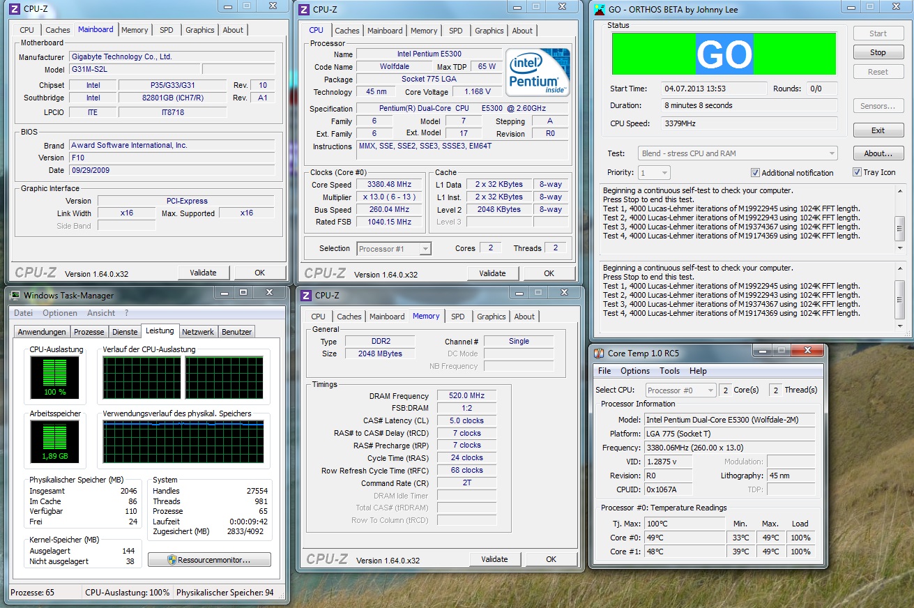 Ich habe versucht meinen Dual Core 2 E 5300 zu Übertakten.