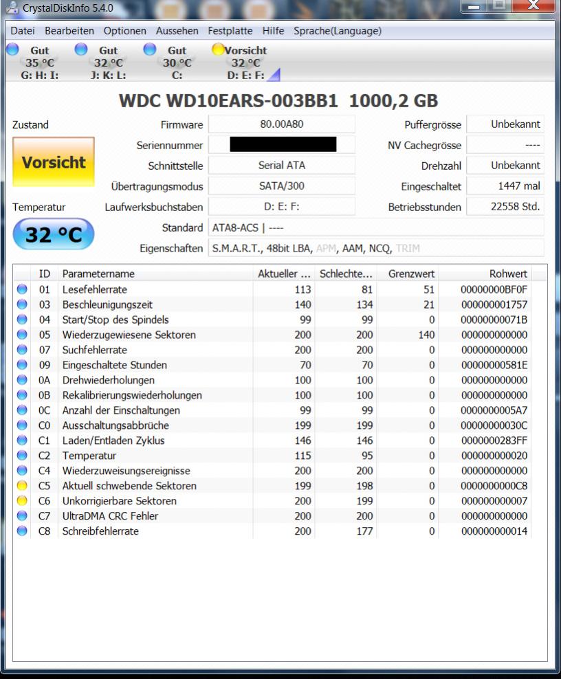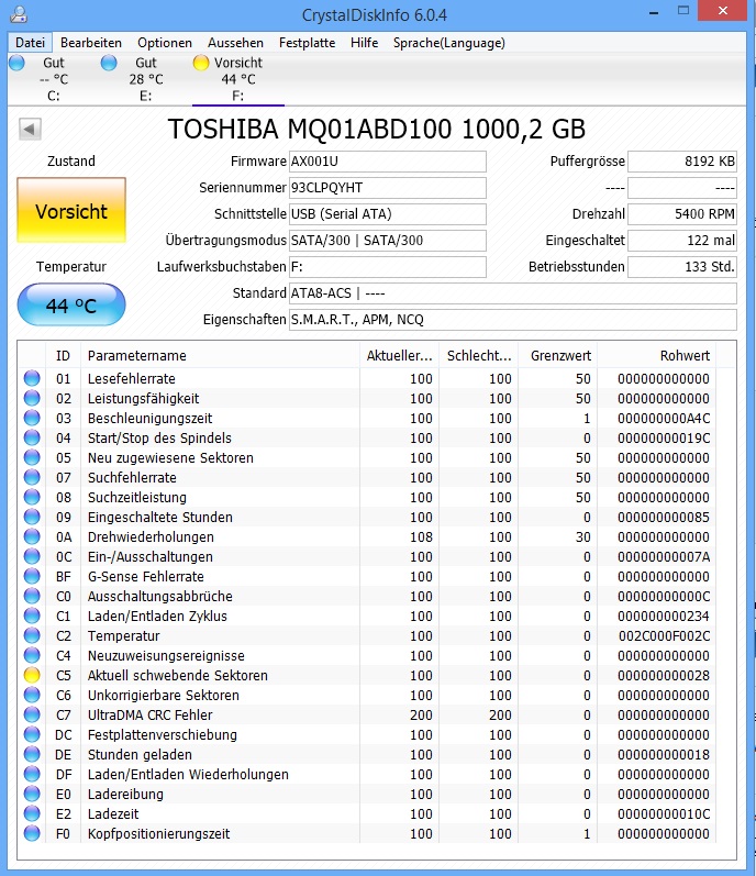 bei dieser wird mir im Crystal DiskInfo schon seit mehr als einem Jahr der gelbe Button angezeigt mit