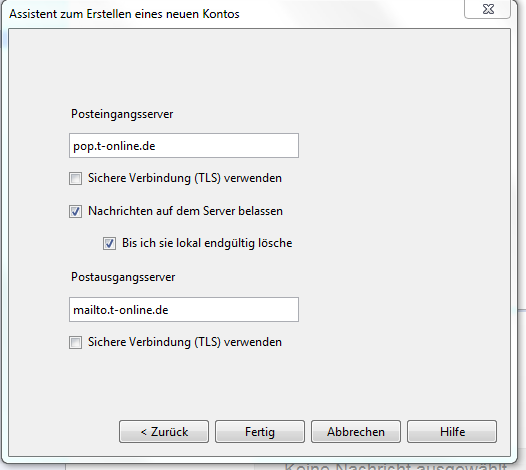 Auf den Registerkarten Posteingang und Postausgang, gibst Du nur die gewünschten Daten, wie automatische Abholung, ob die Mails auf dem Server gelöscht werden sollen, ... ein.