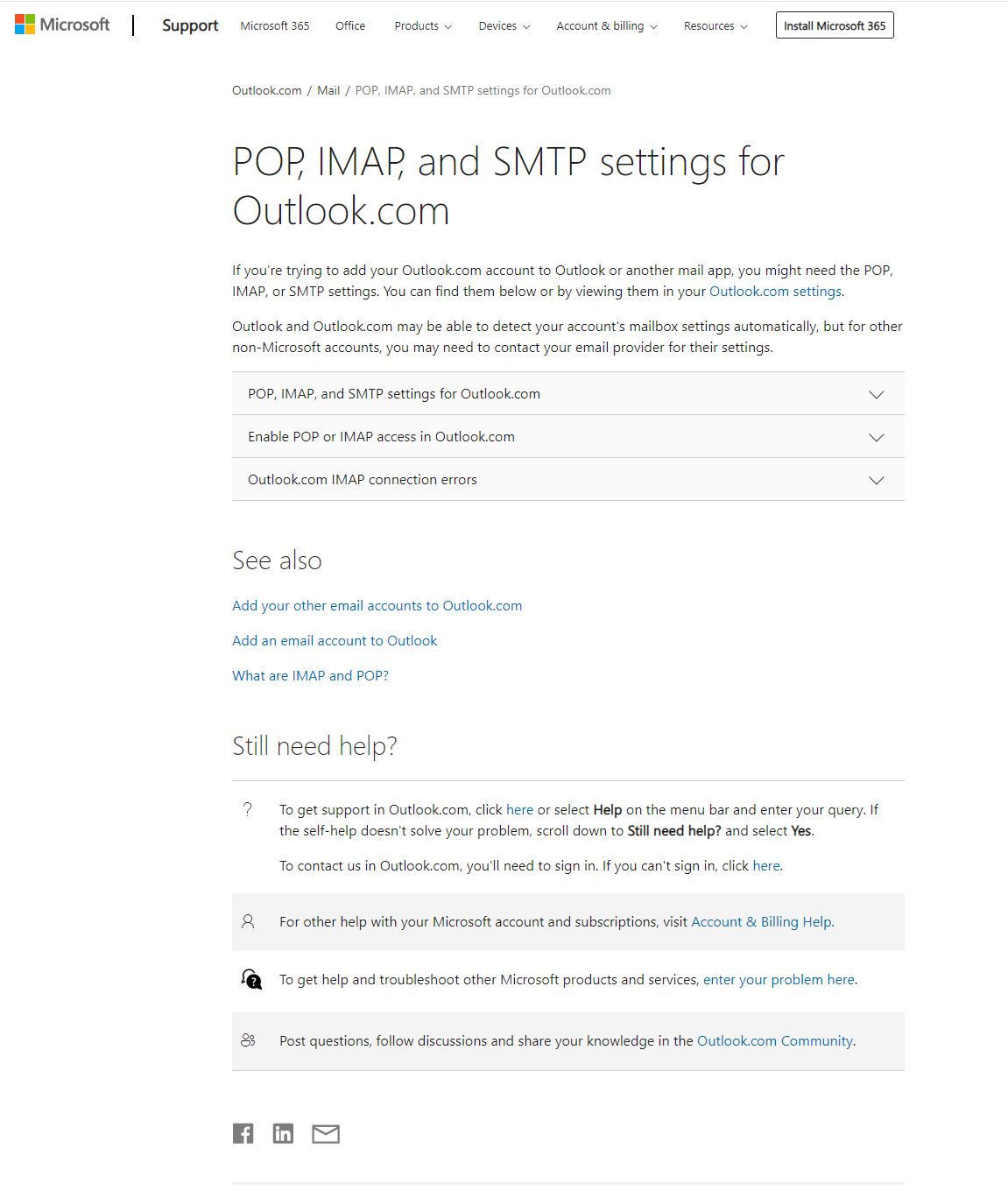 - in outlook.com integrierte E-Mail Konten (@gmail.com und @meinedomain.de) können in anderen Mailprogrammen (z.B. Iphone Mail) ohne Einschränkungen abgerufen werden