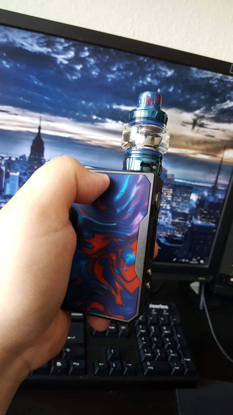 Und jetz ne Fluppe in den Hals. Aber meine weltbeste Maus hatte mir vor etwa einem Jahr so eine E- Dampfe geschenkt und das Teil lag seitdem in meiner Schublade im Schreibtisch. Ich hab des Ding ausgepackt und probiert.