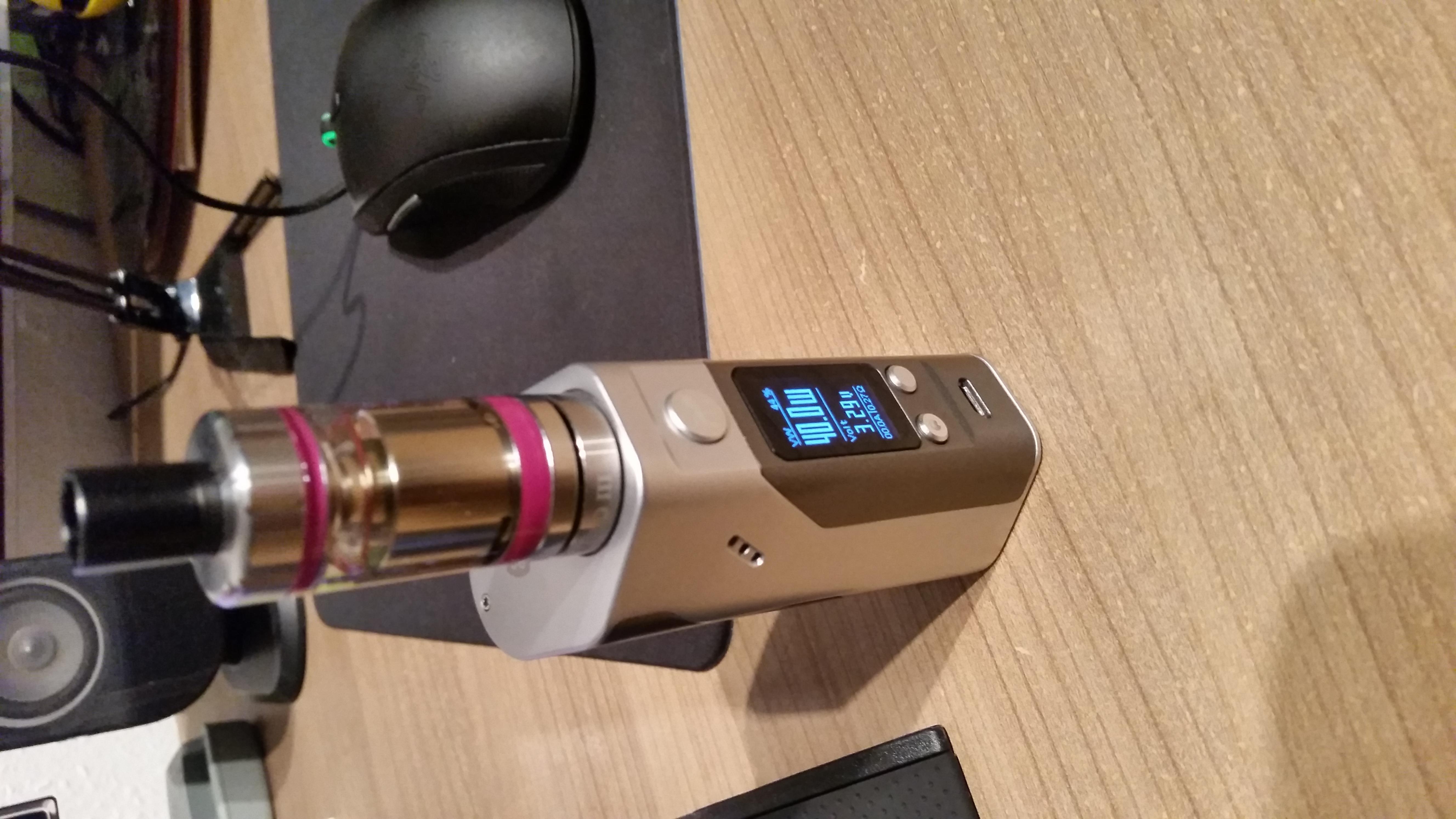 Also ich bin auch ca. vor zwei Monaten von einem AIO Gerät (Evod-Mega) auf eine Wismec Reuleaux RX200S mit Eleaf Melo 3 und alternativ Ehpro Bachelor Nano (Selbstwickler).