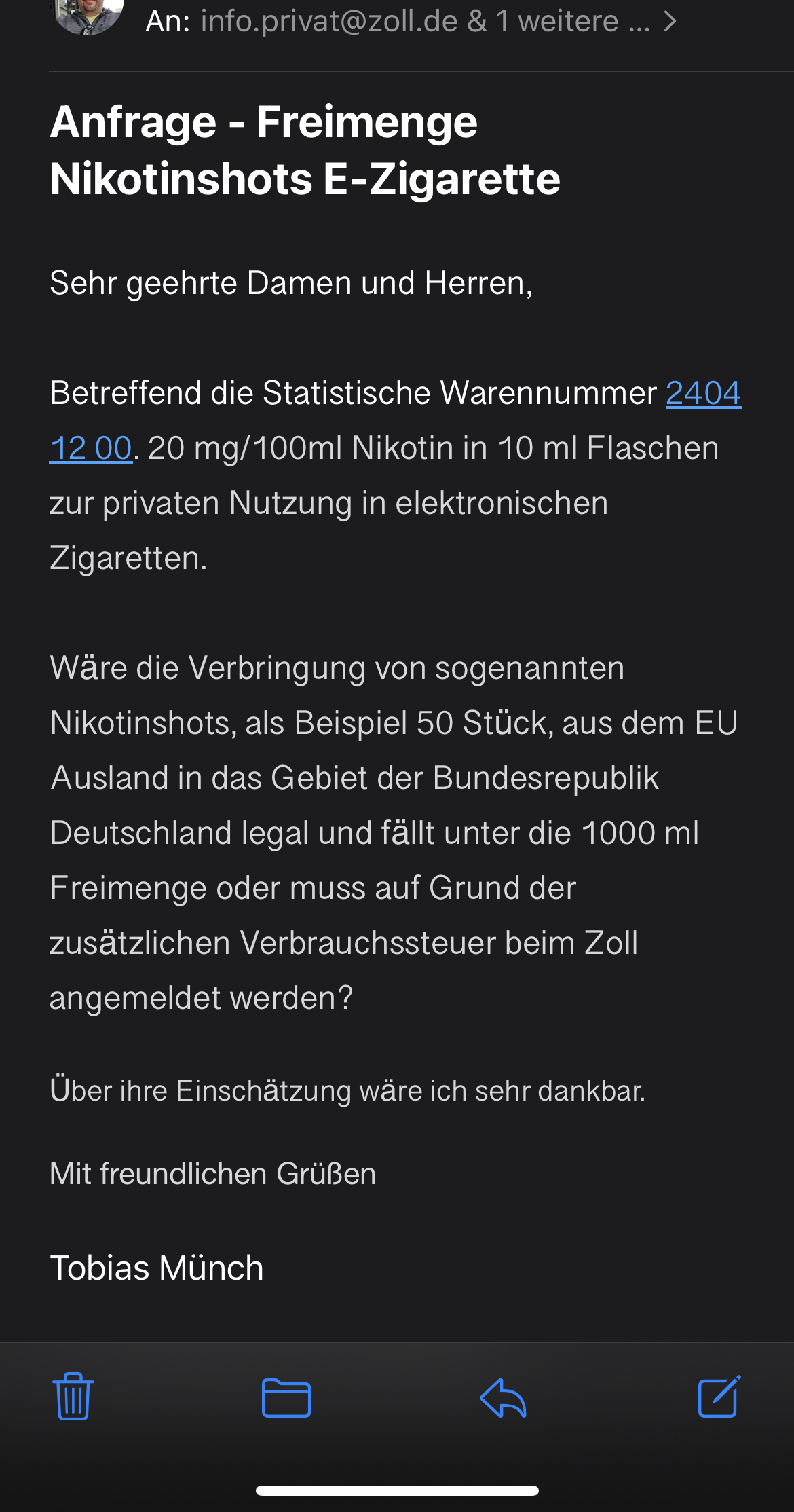 Wenn du 100ml 250mg nic nachversteuern müsstest, stehst du vermutlich am Rand der Insolvenz 😄