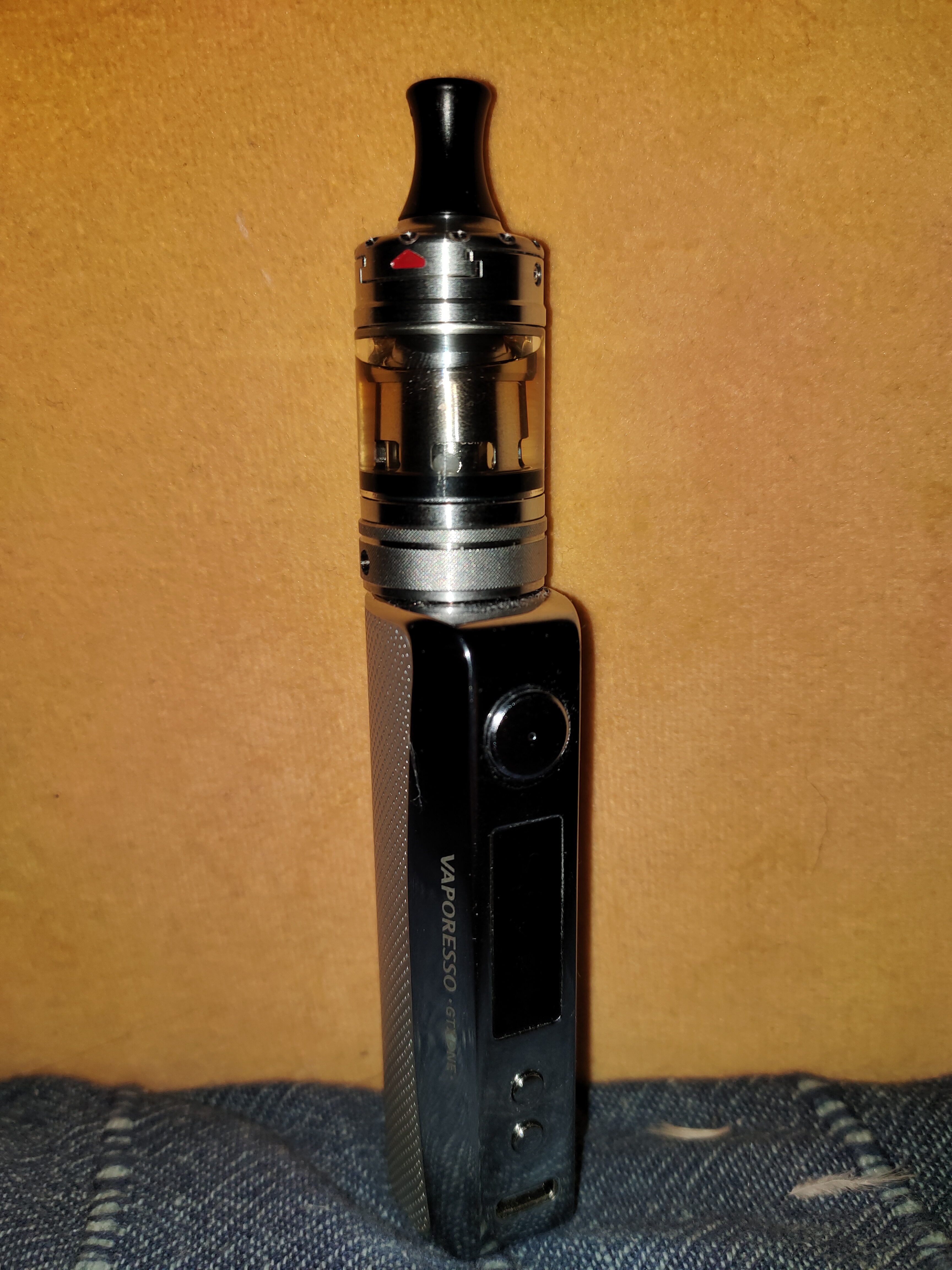 Vaporesso GTX One mit Aspire Nautilus 3 22 mm (1,0 Ω, 13 W, MtL) und zurzeit A&L Nagato Ultimate Sweet/Original (Karamellisiertes Popcorn, Crème Brûlée, 9 %). Geiles Zeug und die Partnerin mag es auch gerne riechen, obwohl Nichtraucherin/Nichtdampferin.