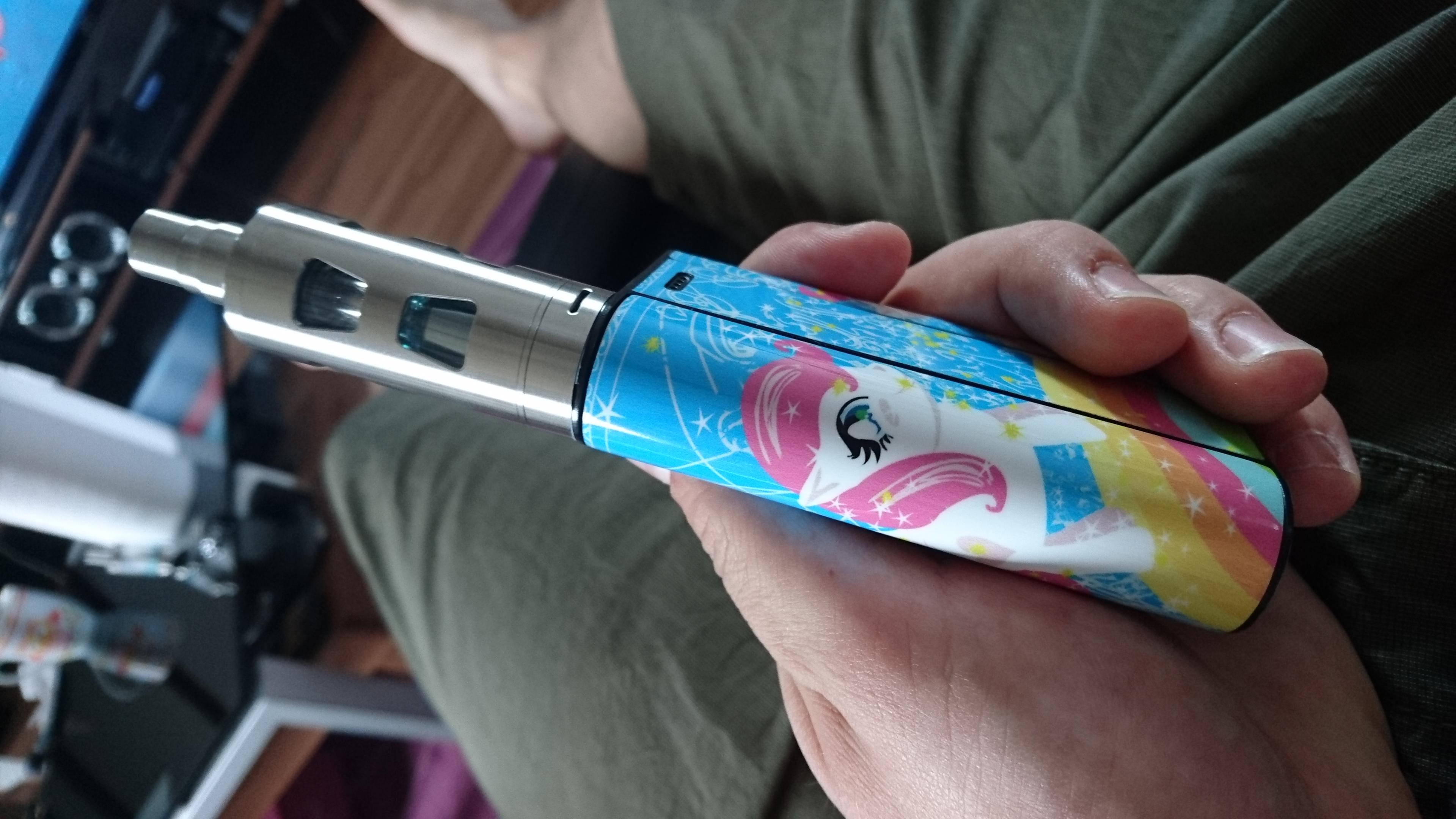 Blöderweise kam das Liquid nicht rechtzeitig an, aber hab noch einen Laden in der Stadt gefunden und bin dort schnell hingefahren. Hab jetzt Maracuja mit 12mg Nikotin drin.
