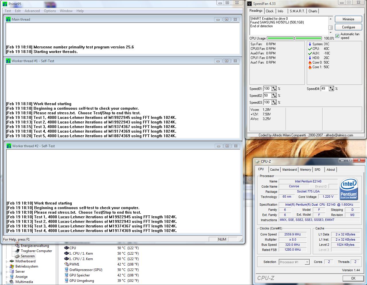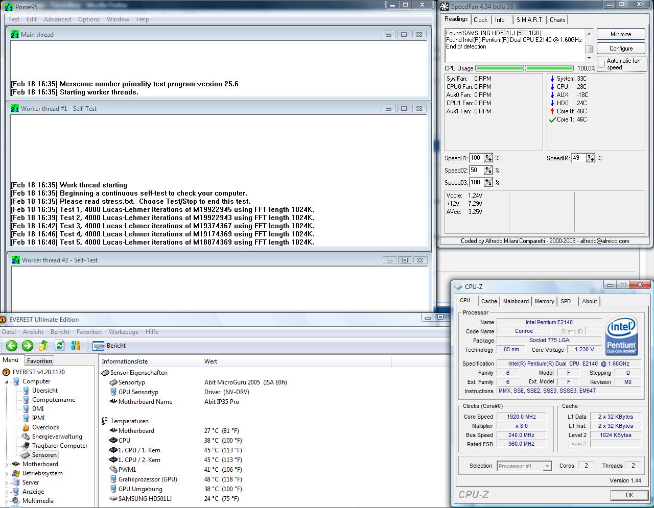So habe dann am Freitag angefangen den PC zu übertakten. Nun ist es so, dass der PC stabil auf 2288 Mhz (8*286) mit einer Vcore von 1,35. Mein Freund der genau das gleiche System besitzt, kriegt seine CPU höher getaktet wobei er das alte L2 Stepping besitzt.
