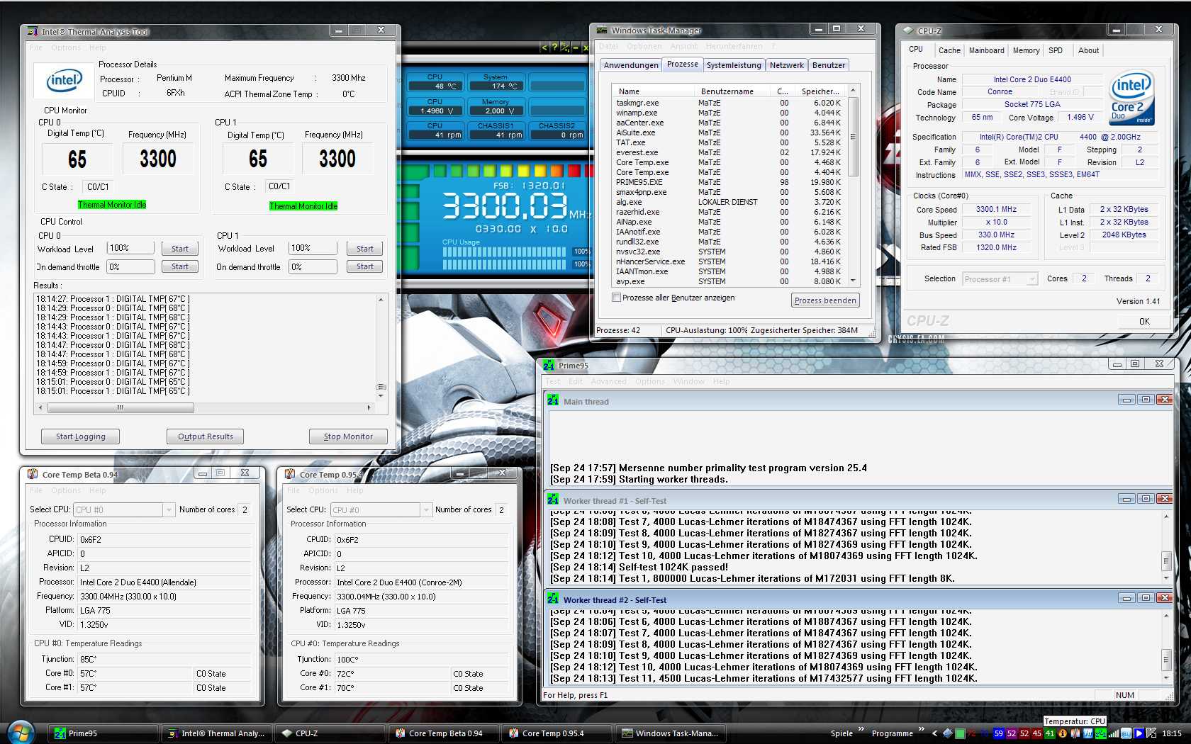 CoreTemp 0.95.4: 72 °C / 70 °C