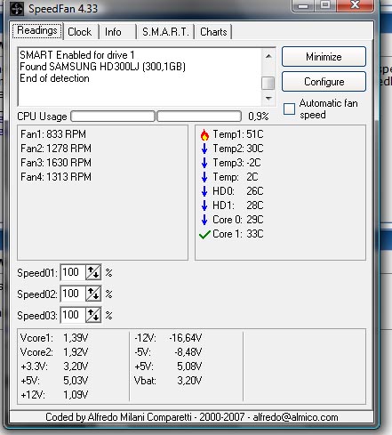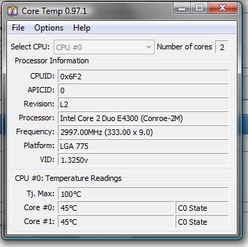 Hab atm einen FSB von 250MHz, Multiplikator 11x - 2750MHz CPU-Takt bei einem VCore 1.216V. Der Speicher Takt liegt bei 400MHz bei nem Teiler von 5:8 und den Timings 4:4:4:12 bei 2.1V. Die Temps liegen im Stress-Test mit Prime bei 40°C CPU-Temps und 45°C Core-Temps.