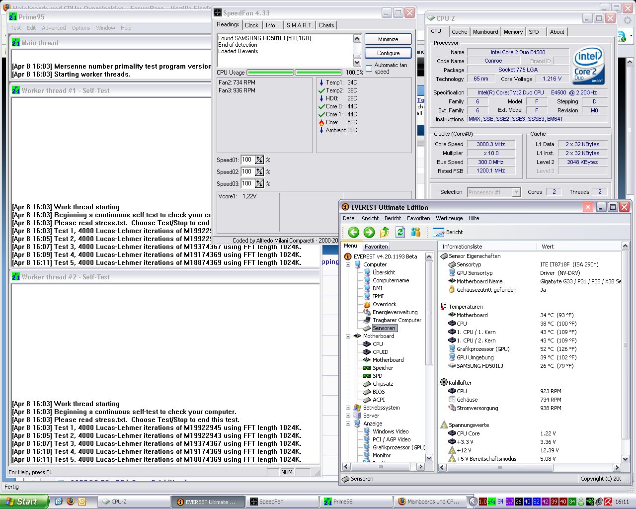 Jetzt ist es endlich soweit und ich verfasse meinen ersten Thread! Hab mich heute ein wenig ins OC eingelesen und hab das jetzt mal an meinem Rechner ausprobiert. Bisweilen mit Erfolg allerdings hab ich jetzt einen Punkt erreicht an dem mein System instabil wird und ich mir Sicherheitshalber Ratschläge von OC-Profis einholen möchte.