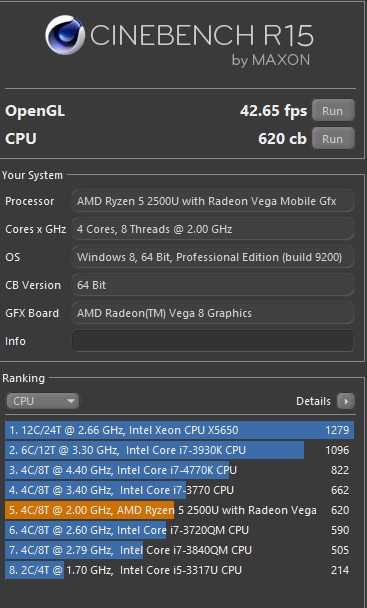 Ich nutze ja den Grafiktreiber den mir Lenovo zur Verfügung stellt und komme konstant auf die 36-37FPs im Cinebench. Speicher ist ein Hyundai aber gleich getaktet und getimed wie der Samsung von Martinallnet.