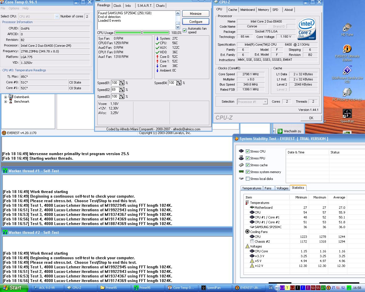 Die Temps sind IMMER im Auge zu behalten. Zumindest in der Testphase. Ein kleiner Tip: einfach die 60°C Warnung aktivieren- die funzt IMMER, egal was für utopische Werte die diversen Tools auslesen.