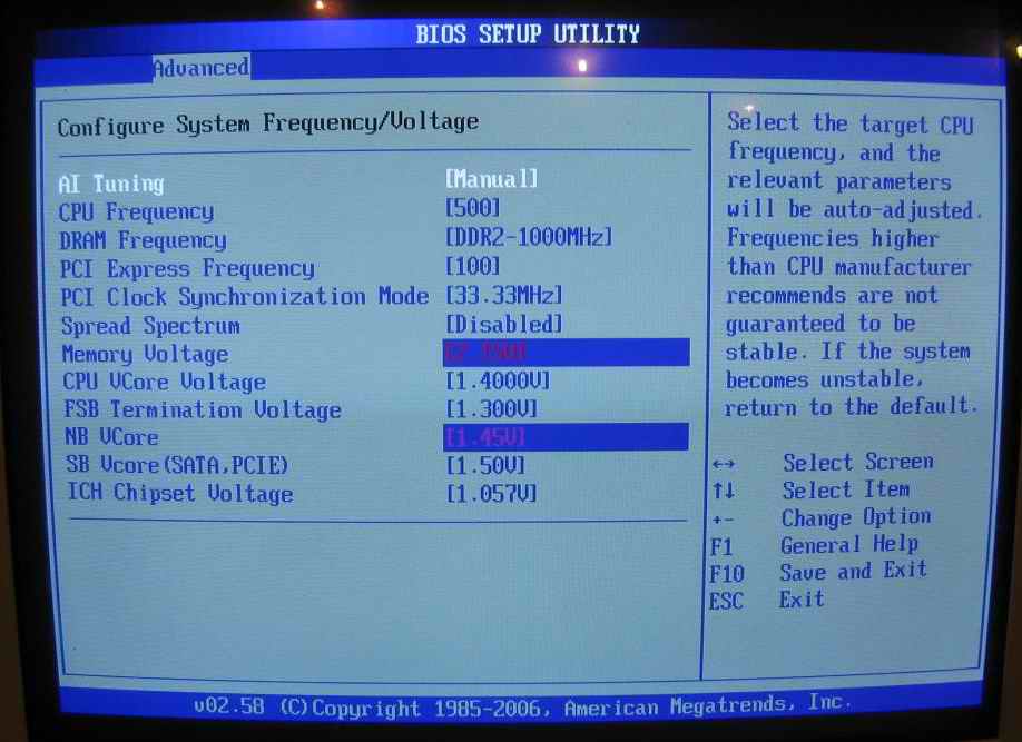 Beim nächsten Schritt, also von 330 auf 345Mhz, wollte der PC nicht mehr aufstarten, also hatte ich zuerst den FBS schrittweise um 5Mhz reduziert, erst bei 330Mhz startete er wieder auf. Auch eine Vcore-Erhöhung hatte nichts gebracht, obwohl ich bis 1.42 ging.