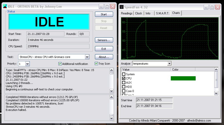 Da ich denke, dass solche Temps während eines Orthos Tests bei einem unübertakteten E6600 nicht normal sind, wollte ich fragen wer mir hier vielleicht weiterhelfen kann.