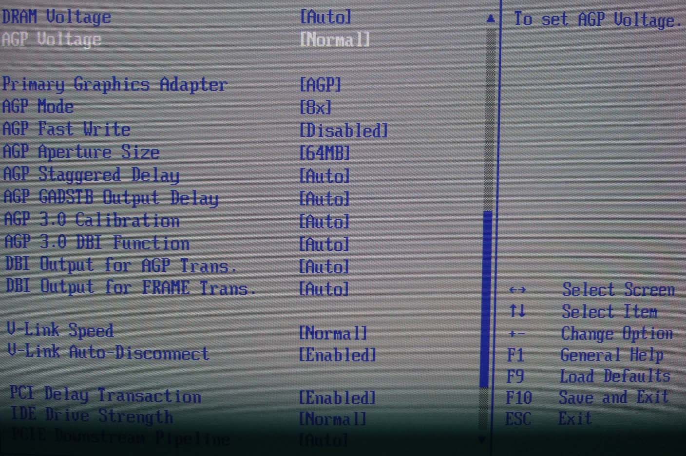 zu ***BlAdE***: du meinst sicher die AGP Durchsatzgröße, ja die ist auf 64 MB eingestellt, das war schon so und ist auch nicht das problem, auf einem höheren Wert ändert sich nichts am Problem.