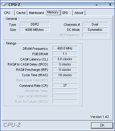 Die Speicher laufen mit den Timings von 5-5-5-15 mit 2T