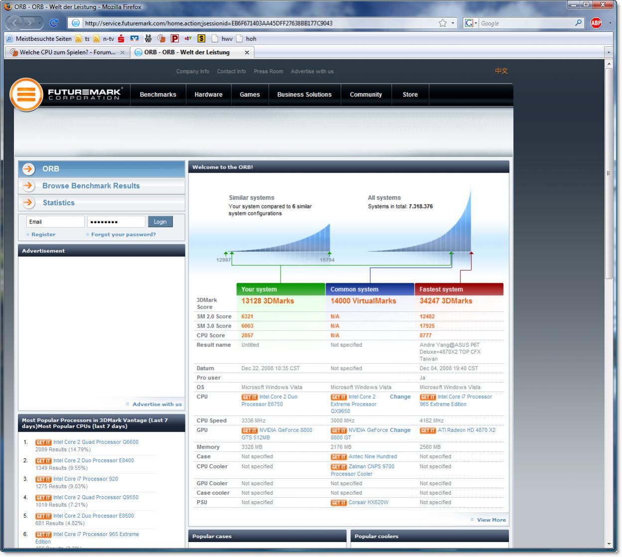 Ich habe grade eben auch mal 3dMark06 laufen lassen und nur 9253 Punkte erreicht! Wie ist das denn möglich, soweit ich sehen kann hast du eigentlich die selben Komponenten wie ich, oder täusche ich mich da?