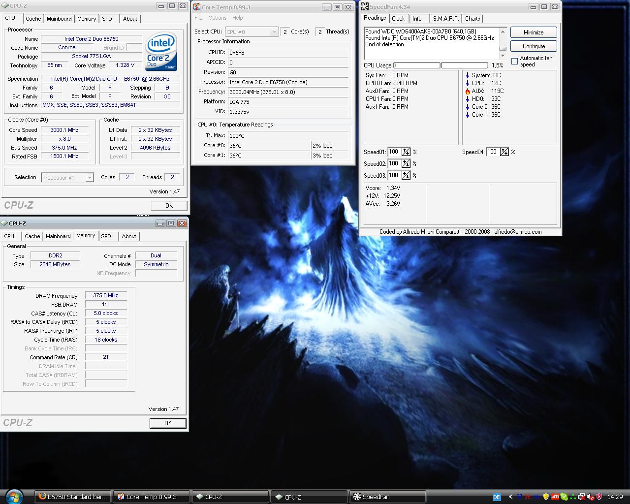 Und 3.6 GHz sind definitiv nicht in jedem E6750 drin, bei gesunder Spannung.