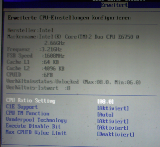 ich denn auf 3,21GHz mache ist meine USB-Karte