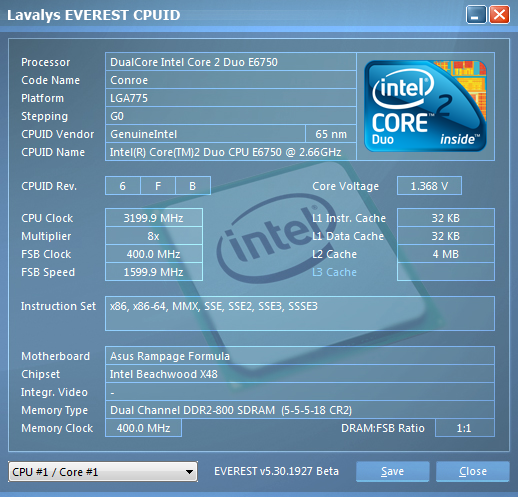 CPU Intel DualCore 2 E6750 1333FSB 2,66GHz