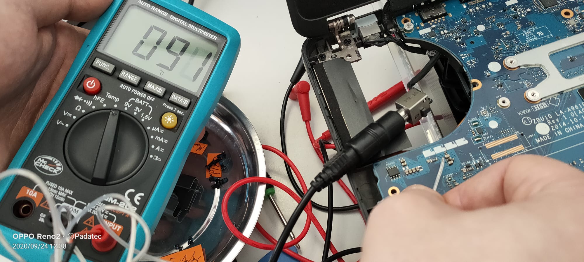 Deshalb sind wir weiter auf die Suche gegangen und sind auf ein Teil aufmerksam geworden welches sich sehr schnell erhitzt. Nach dem der Laptop am Netzteil hängt wird das Teil nach ca 30sek schon über 90 Grad heiß.