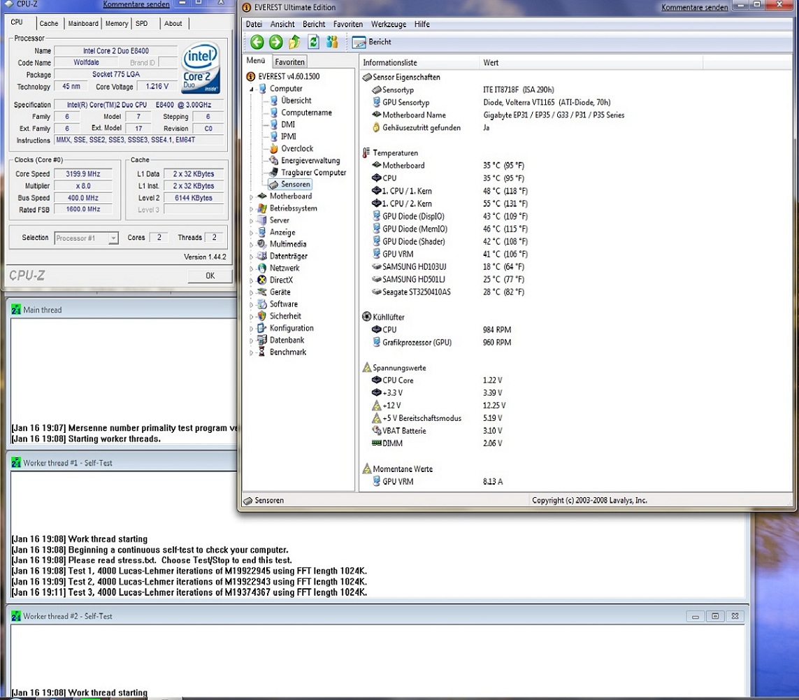 Jetzt hab ich mal was neues ausprobiert. Ich hab den Multi von 9 auf 8 gesetzt und gleichzeitig den FSB auf 400 (ergibt im endeffekt 3,2 Ghz CPU takt) angehoben.