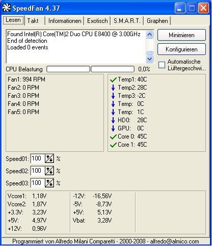 Wenn ich im Bios die Spannungen auf Auto stelle (im nicht übertakteten Zustand(!)), so ist vCore bei 1,375, obwohl die E8400 einen Wert von 1,225 haben sollte.