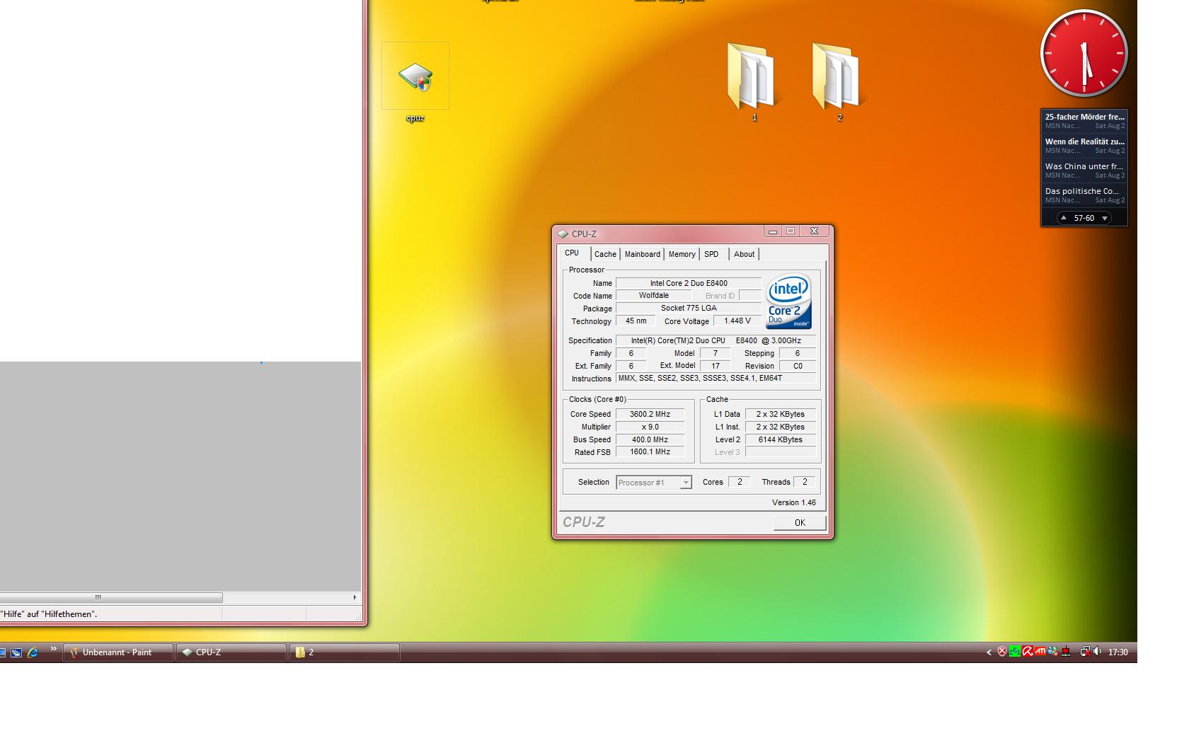 Setze bitte wie der @cyberpepi geschrieben hat, einen Screenshot rein und so, machst Du das: STRG+Druck=>Start=>Alle Programme=>Zubehör=>Paint=>Bearbeiten=>Einfügen=>Speichern unter=>Eigene Bilder=> JPEG Format!