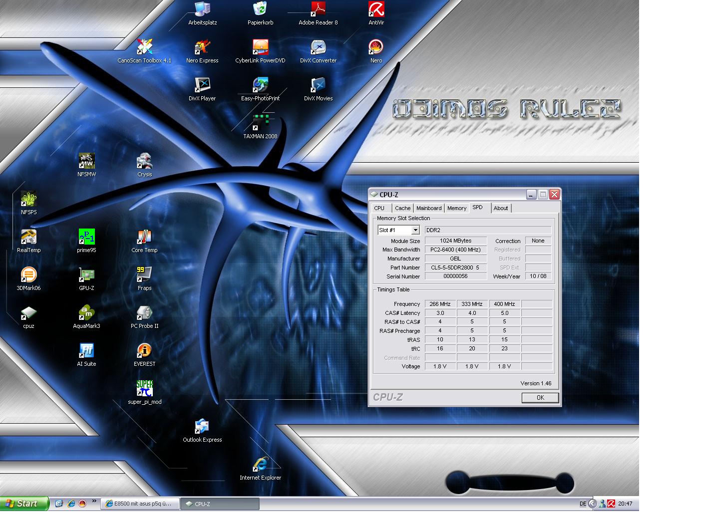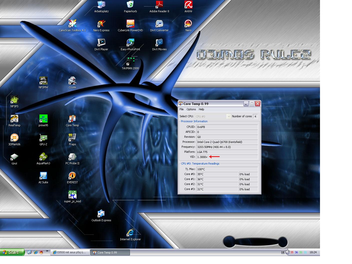 Bitte nun euch mir eine genaue (vor allem wo ich welche befehle im bios finde) für den e8500 zugeschnittene anleitung zum übertakten zu geben, und noch eine kleine Frage... Ich besitze everest und es gibt 3 temps ... 1KERN (ca immer 45-55°)//2KERN (ca immer 40-45°//CPUTEMP (ca immer 37-48°) _> Nach welcher solle ich mich richten?