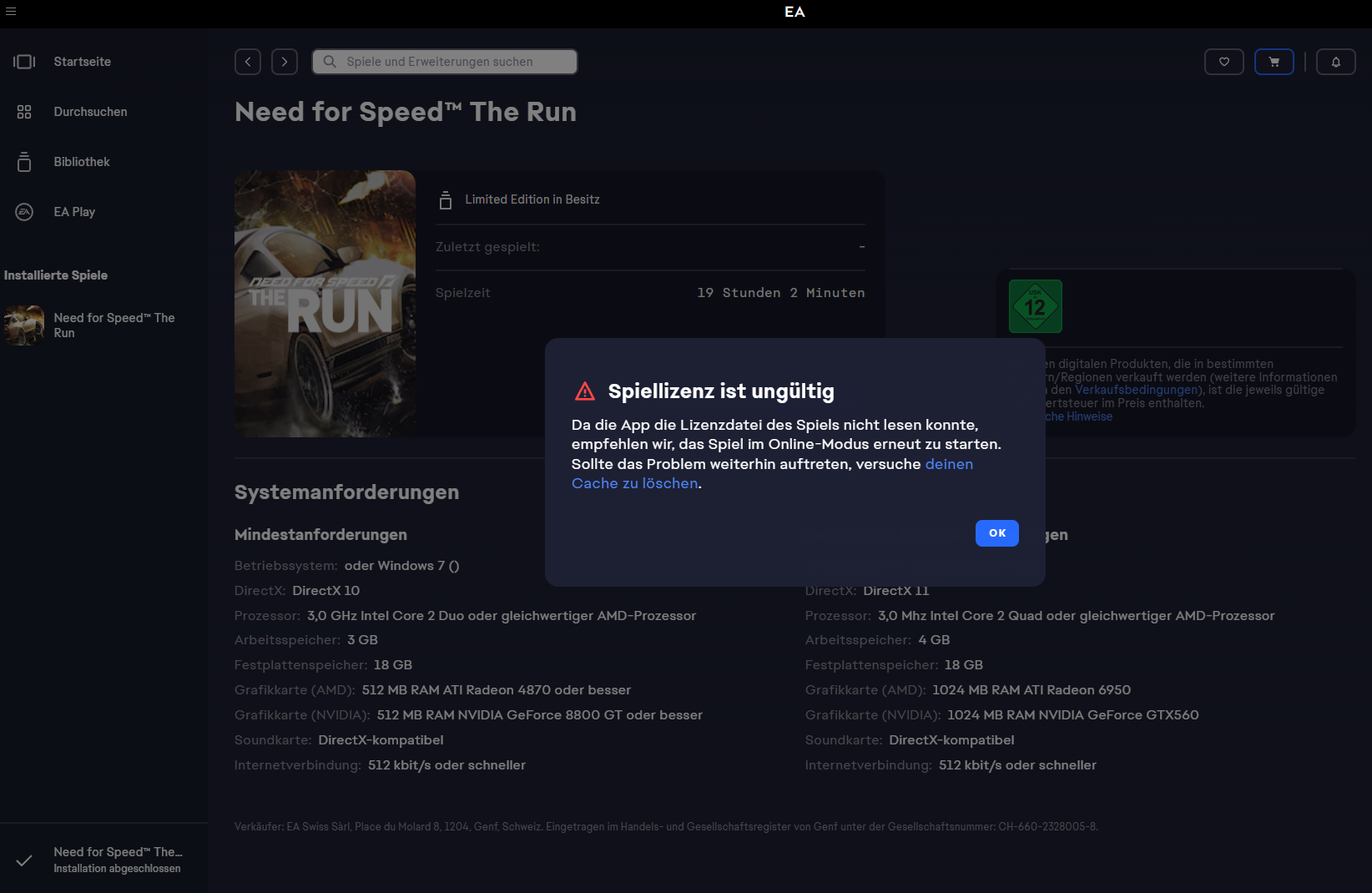 Moin ich wollte noch einmal NFS The Run spielen, beim Spielstart bekam ich dann diese Meldung.