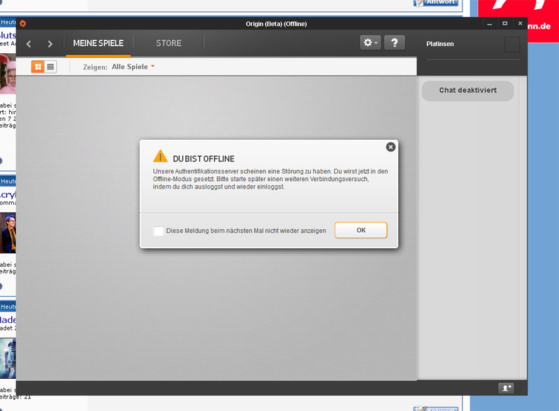 Da steht immer "Das Origin-Netzwerk ist nicht erreichbar. Bitte überprüfe deine Netzwerkverbindung und versuch es noch einmal"