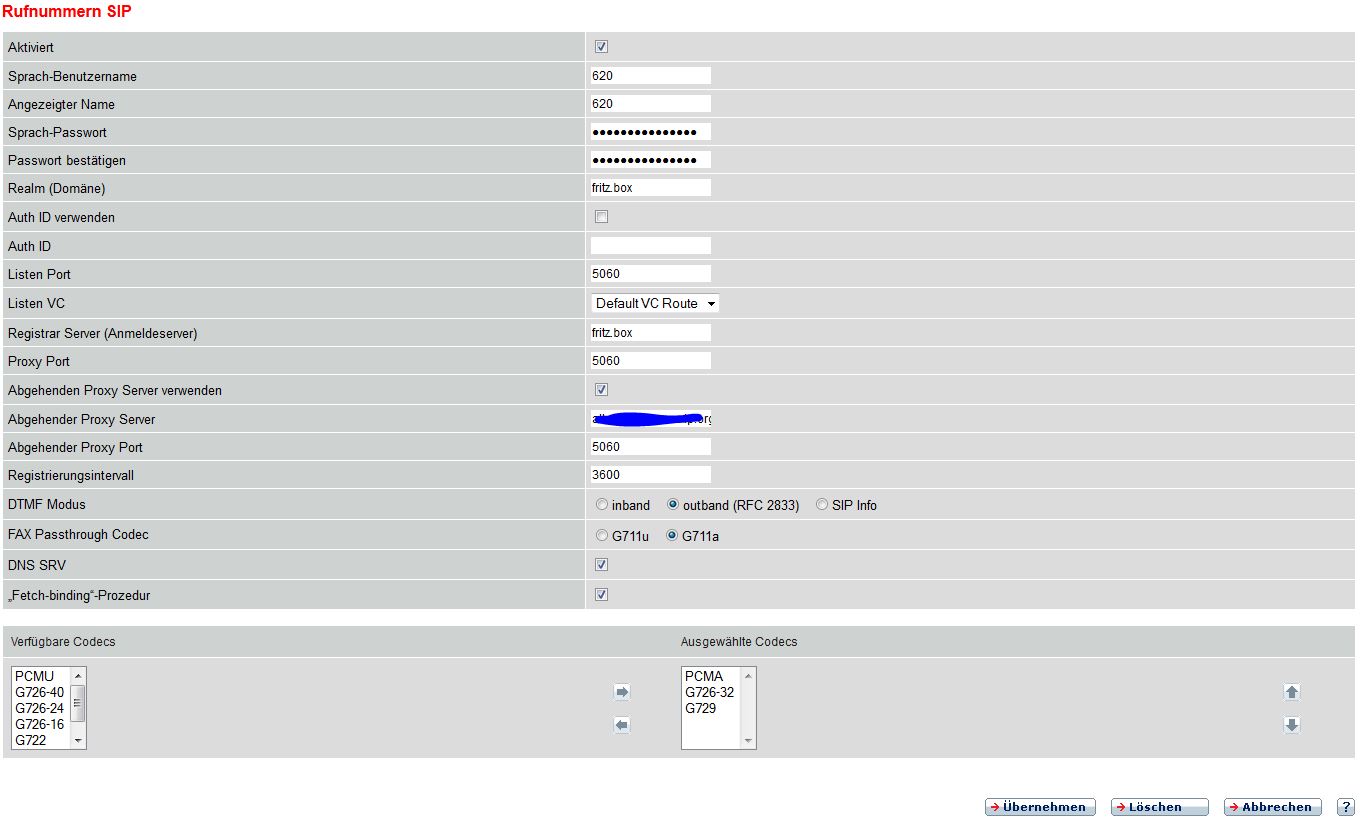 Was mir gerade aufgefallen ist: wenn ich in die Übersicht gehe, steht bei der Rufnummer "Sip Proxy fritz.box" die Konfig ist aber wie auf dem Screenshot