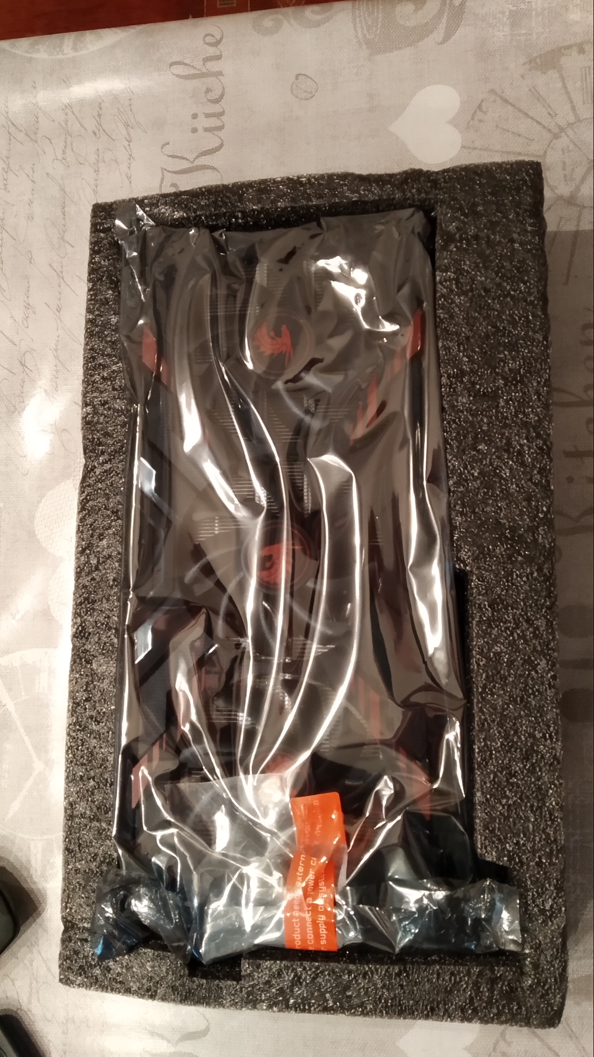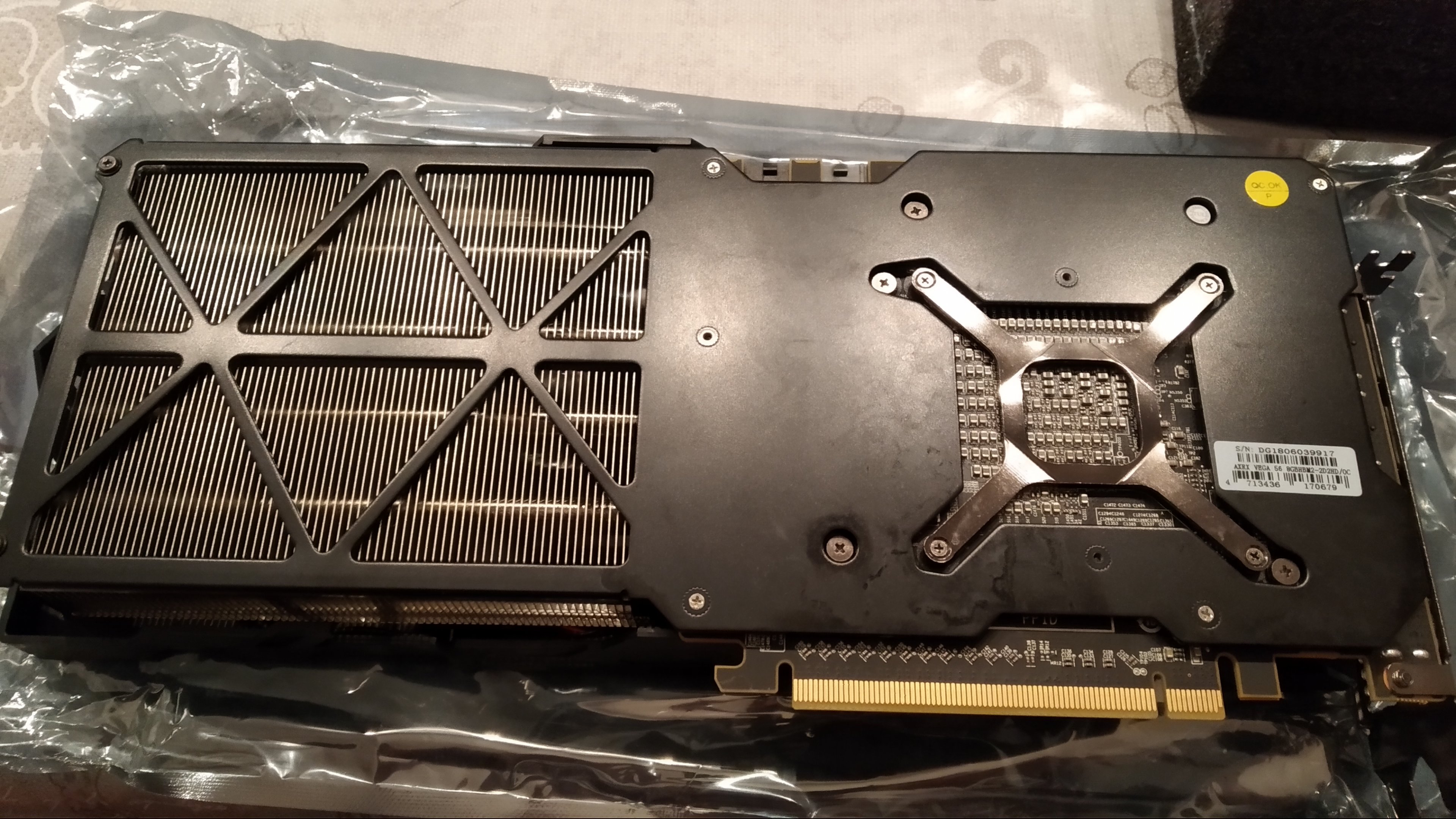 Beim Auspacken war mir auf der Rückseite noch ein leichter Film auf dem Metall aufgefallen (sieht man auch auf dem Bild). Was da jetzt drauf war kann ich nicht sagen, man kennt das ja von Metallsachen, das diese leicht ölig sind bei Neuware. So kam mir das hier auch vor. Zudem hat die Karte ziemlich nach Kunststoff gerochen, als ich sie ausgepackt hab.