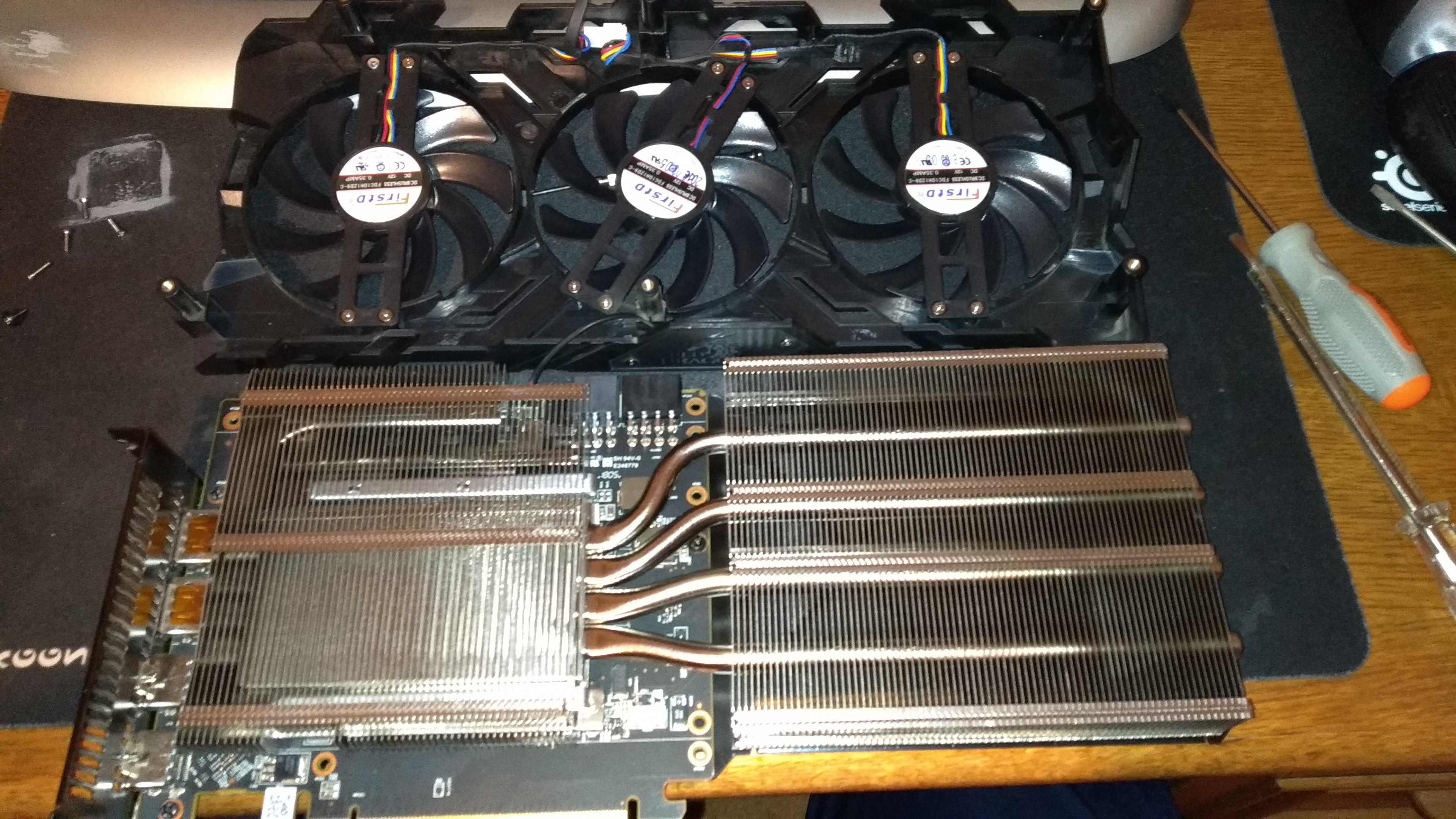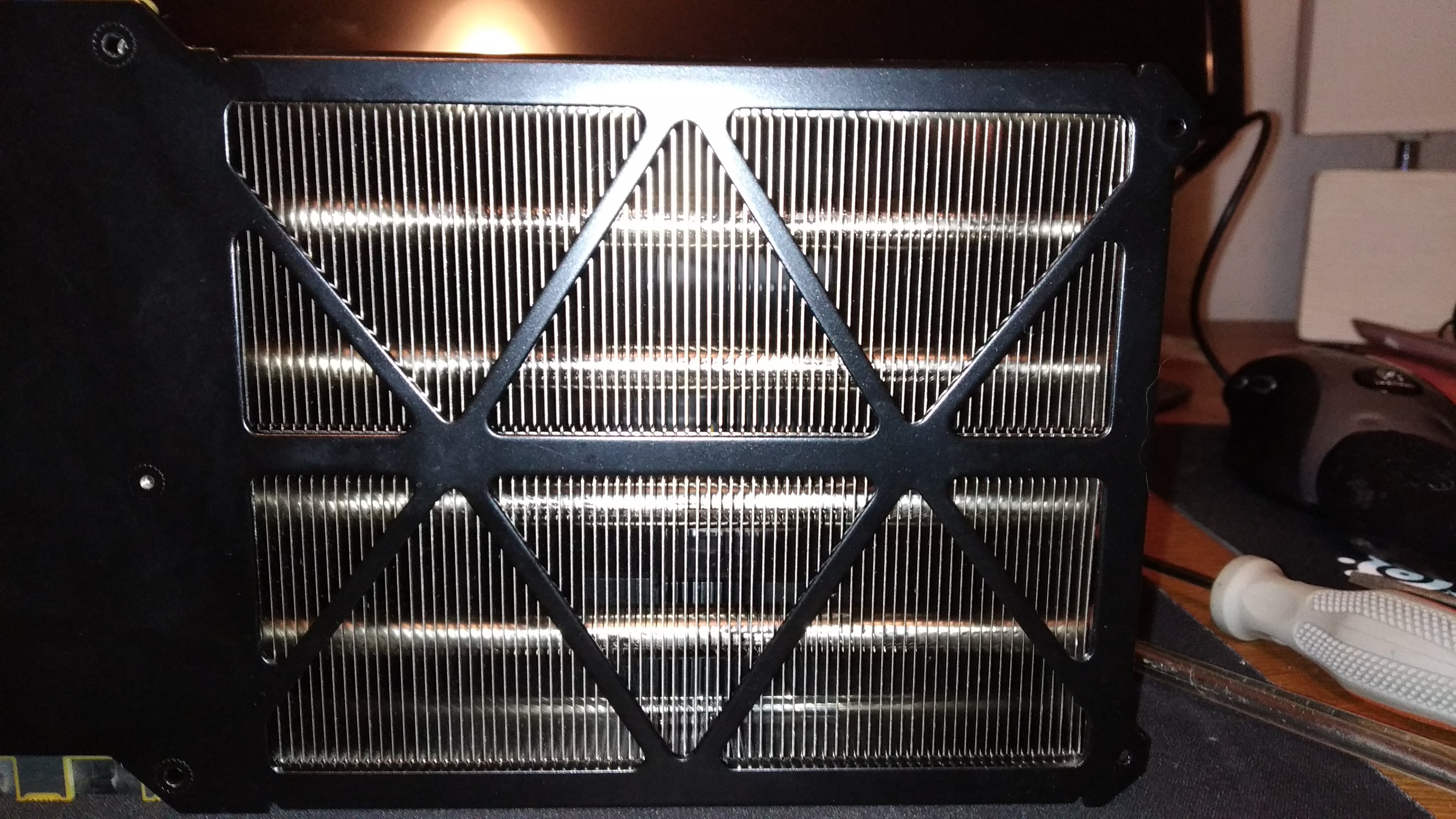 Das ist wirklich Beschiss und garantiert keine Neuware mehr. Hätte meine Karte so ausgesehen wäre sie ebenfalls sofort zurück gegangen. Noch kann ich sie auch zurück schicken. Jetzt bin ich hin und her gerissen. Ich konnte bei mir wirklich kein Staubkörnchen entdecken. Entweder haben sie sich sehr viel Mühe beim putzen der Karte gemacht oder ich muss vielleicht doch mal den Kühler abbauen ob da noch was zu finden ist.
