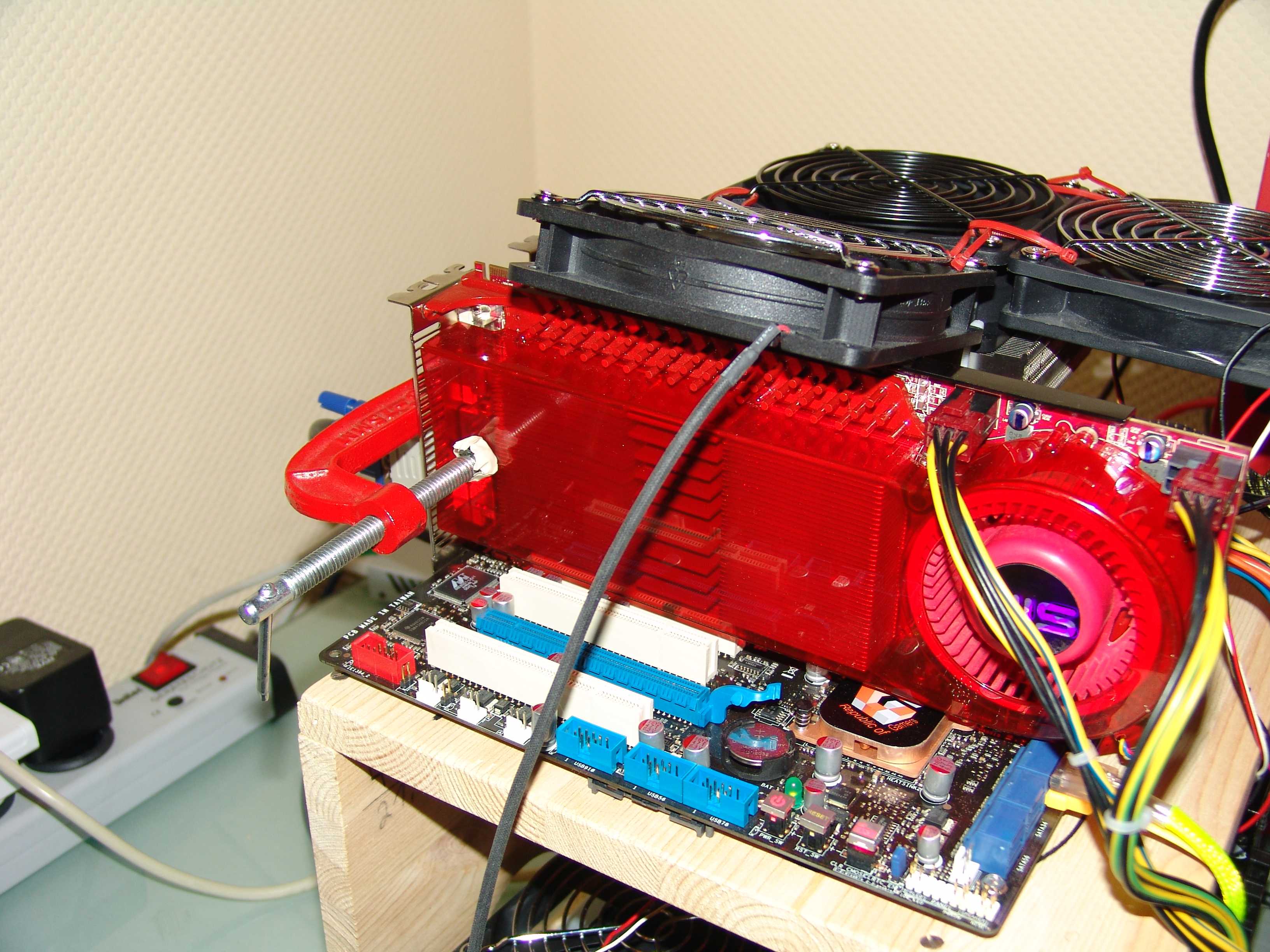 Jeder extrem übertakter reißt den originalkühler runter, stopft irgendwas auf die GPU und stellt ein Lüfter vor den Ram. Völlig ausreichend für extrem Übertaktungen die jeder hier, inklusive mir, nicht auf die Reihe bekommt.