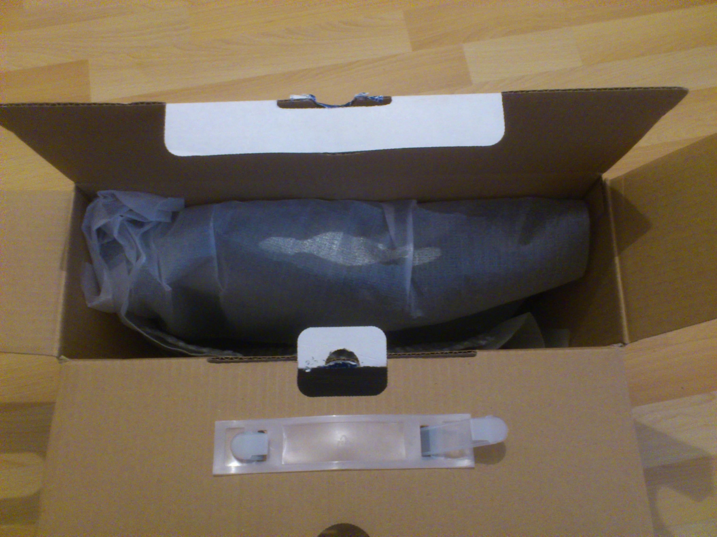 Wobei ich finde, dass der Laptop an sich schon gut verpackt war, Umkarton, Herstellerkarton, in dem Herstellerkarton natürlich der Laptop, welcher mit Folie eingepackt war, und zwischen Display und Tastatur auch nochmal Folie. Jedoch war etwas Spiel in dem Karton, sodass dass Netzteil ich schätze mal 3-4 cm auf jeder Seite hatte. Ich persönlich hätte natürlich den Zwischenraum mit Papier oder Luftpolsterkissen gefüllt.