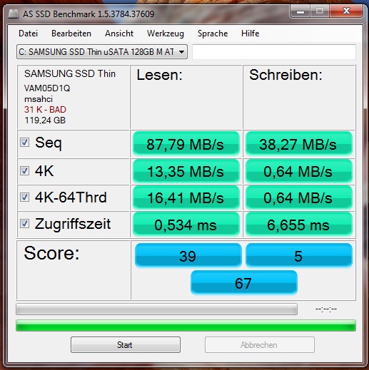 Im Endeffekt sicher alles halb so wild, wäre da nicht noch die SSD-Performance, wegen der ich das Notebook erst gekauft habe.