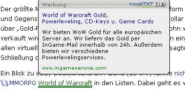 Bei mir ist World of Warcraft grün unterlegt und mir wird über IntelliTXT Gold uvm angeboten - und das in sonem Artikel, ich weiß, ihr könnt nix dafür, aber naja: