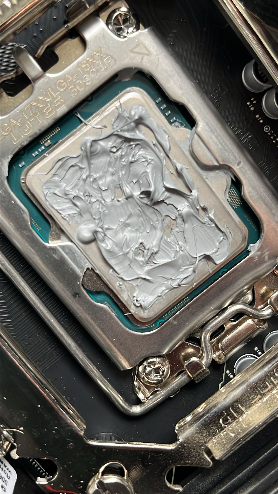 Ein kleiner Klecks (Erbse) in der Mitte reicht, der wird beim Montieren vom Kühler in alle Richtungen platt gedrückt.