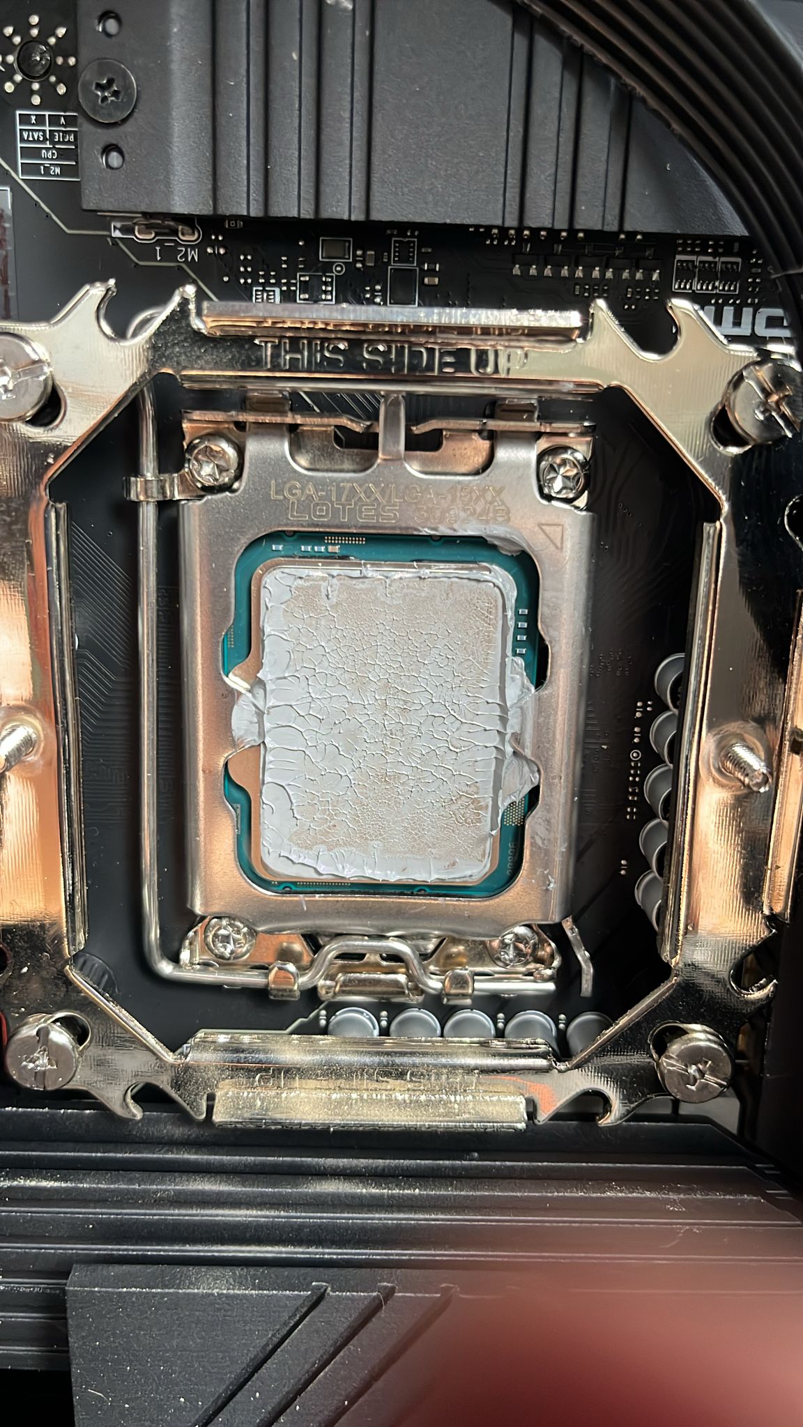Du kannst ja mal alles sauber machen (Isopropanol), einen längeren Papierstreifen zwischen CPU und Kühler legen (ohne Paste!) und nach gleichmäßigem Festziehen der Schrauben (rundrum, siehe oben) versuchen, den Streifen rauszuziehen.