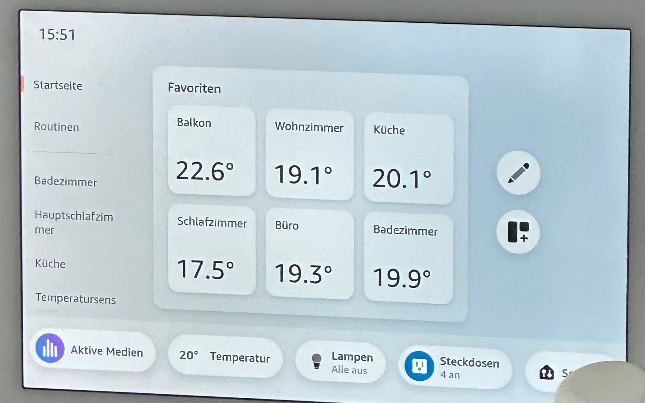 ich hoffe ihr könnt mir weiterhelfen. Also ich besitze einen Echo Hub! Dieser ist mit mehreren Temperatursensoren verbunden. Jetzt beobachten ich, dass sich die Anzeige der Temperatur erst nach Stunden aktualisieren. Allerdings sind die Daten in der Alexa App immer aktuell. Hab den Hub schon vom Strom getrennt und auch auf Werkseinstellung zurückgesetzt. Leider hat dies keine Veränderung gebracht.
