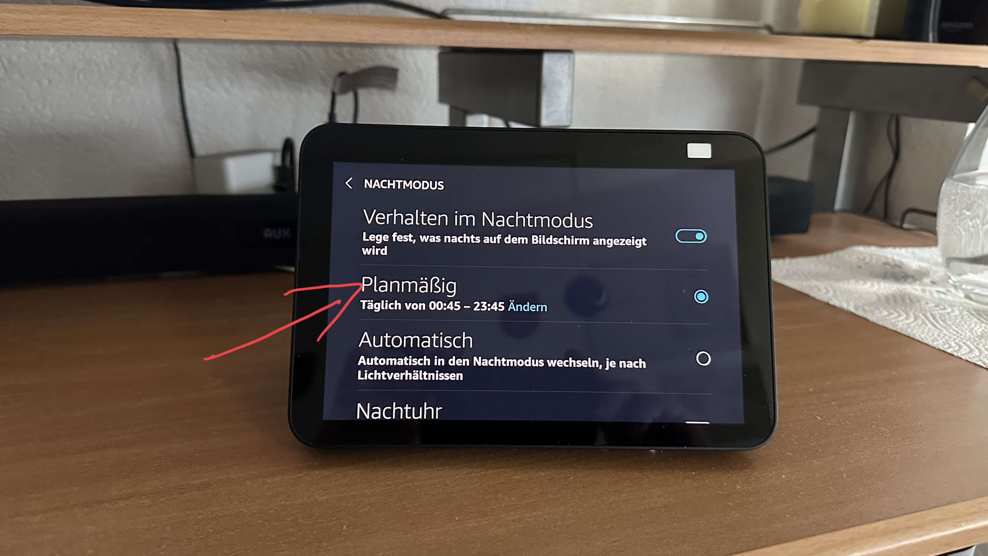 ich fange mit dem ersten Problem an: Display (Einstellungen) beim Echo Show8 1. Generation (habe zwei Stück)
