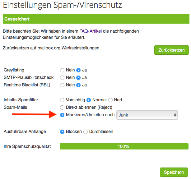 Kann es sein, dass mailbox.org erst kürzlich einen Spam-Ordner hinzugefügt hat? Ich hab erst seit Kurzem einen Account dort und sehe einen Spam-Ordner. Unter Einstellungen -> Einstellungen Spam / Virenschutz gibt es zudem die Möglichkeit zu wählen, ob Spam-Mails rejected (default) oder markiert und in den Junk-Ordner verschoben werden sollen.