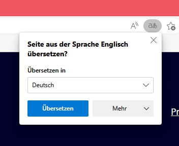 2. Mich nervt die Einblendung, mit welcher Edge Webseiten übersetzen möchte: