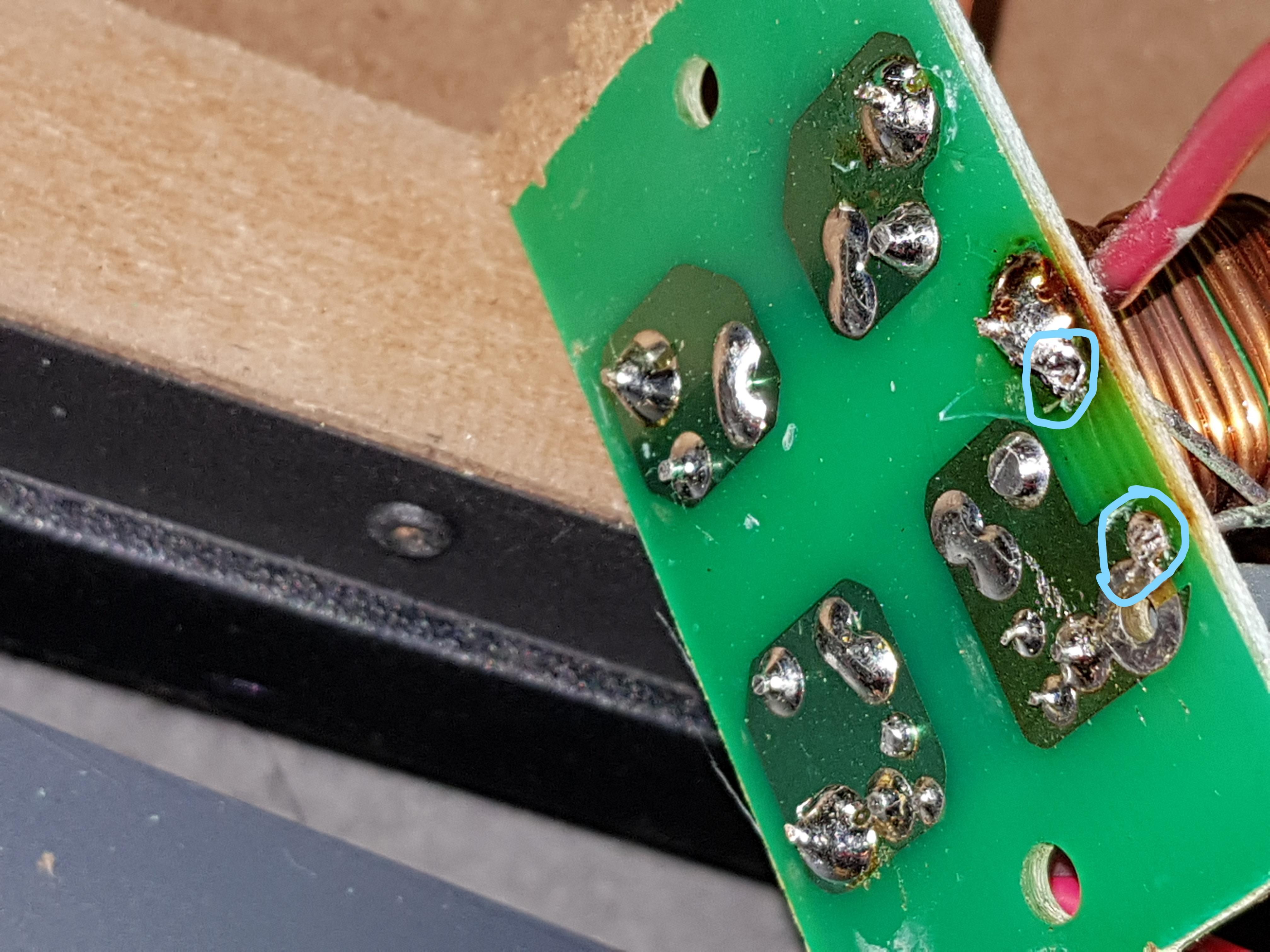 Du solltest mal ein Foto von der Rückseite der Platine schießen, hier kann man wenigstens den Stromlauf erkennen und mehr Rückschlüsse ziehen.