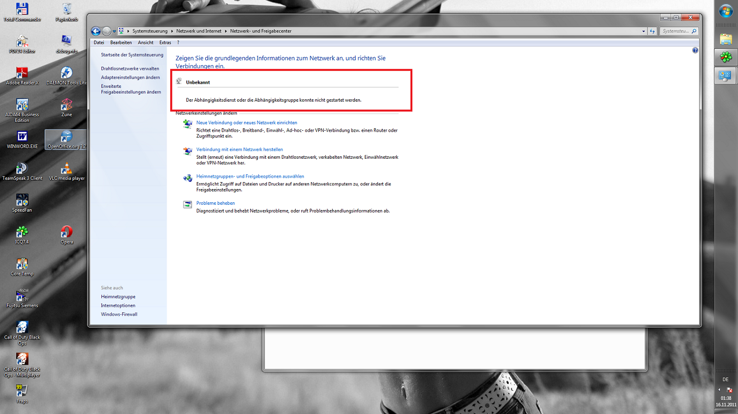 Ein Kumpel von mir hat grad nochmal draufgeschaut und der meint mein Netzwerkcenter sieht komisch aus weil ich kein Haus und so habe : D Dabei ist mir die Meldung "Der Abhängigkeitsdienst oder die Abhängigkeitsgruppe konnte nicht gestartet werden." aufgefallen. Hat das irgendwas zu bedeuten ? Außerdem kann der Diagnoserichtliniendienst bei mir nicht ausgeführt werden..