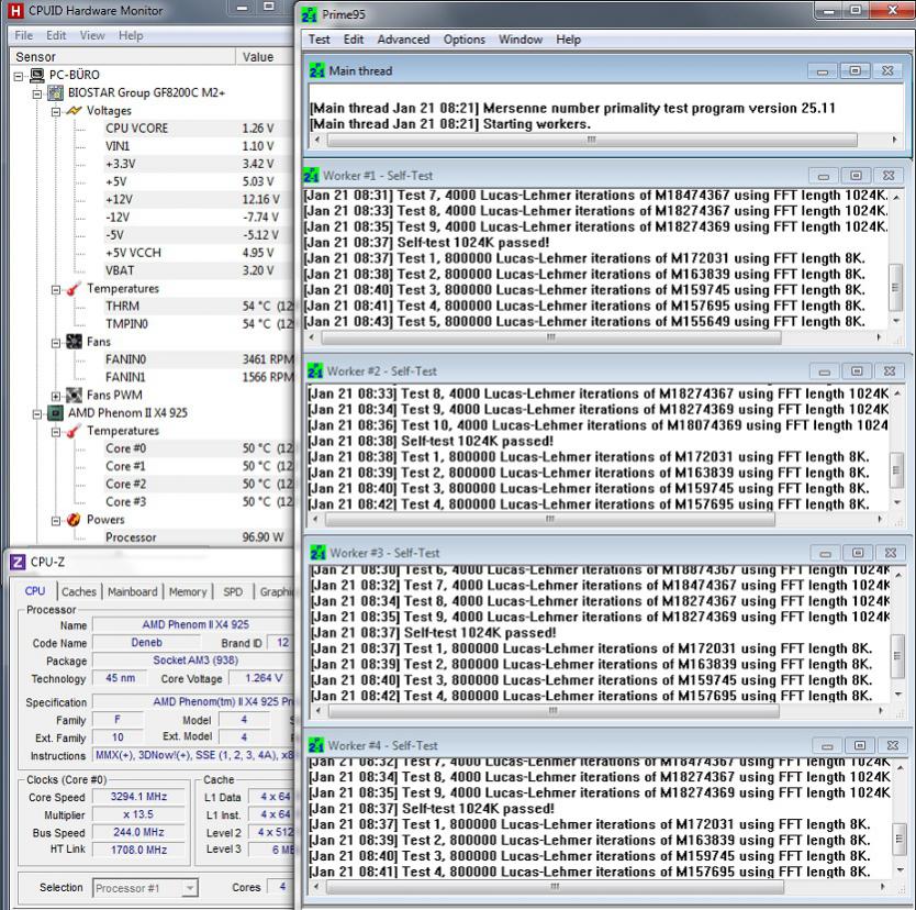 Hier die meinige Temp.-Werte bei 22 Grad Zimmertemp. und ca. 22 Minuten Lastbetrieb